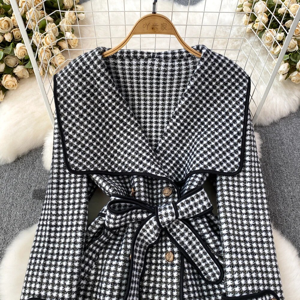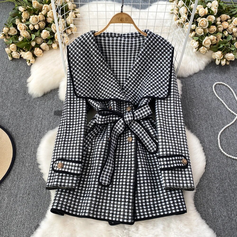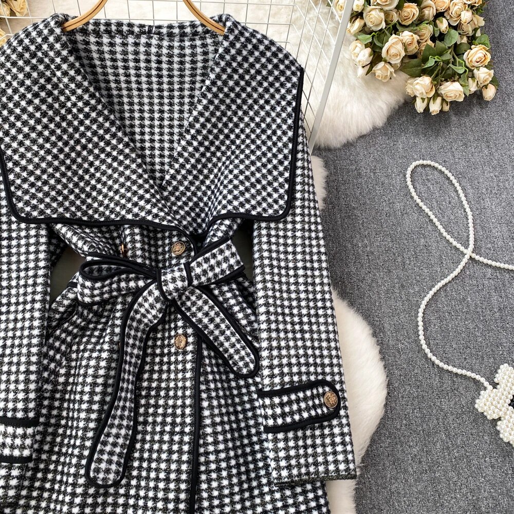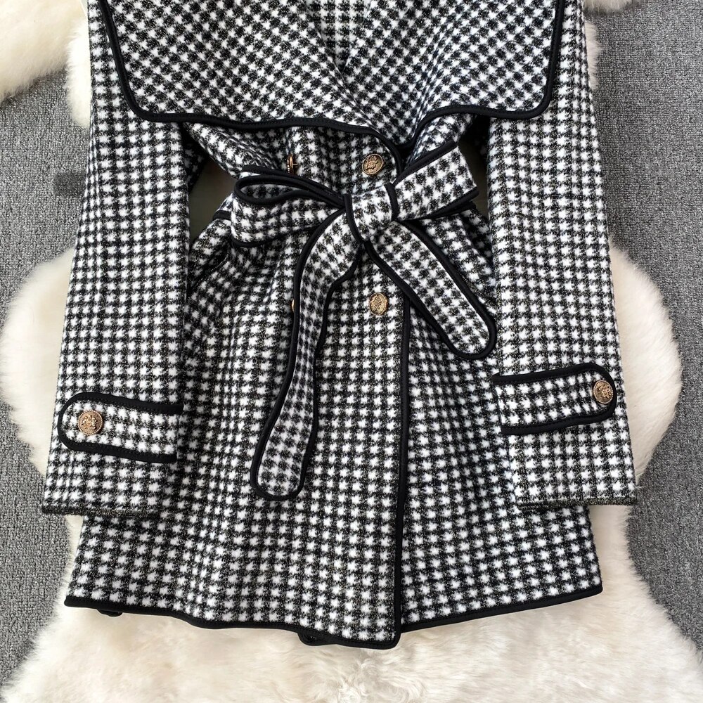 Fashion Navy Collar Loose Waist Woolen Coat Design Jackets for Women