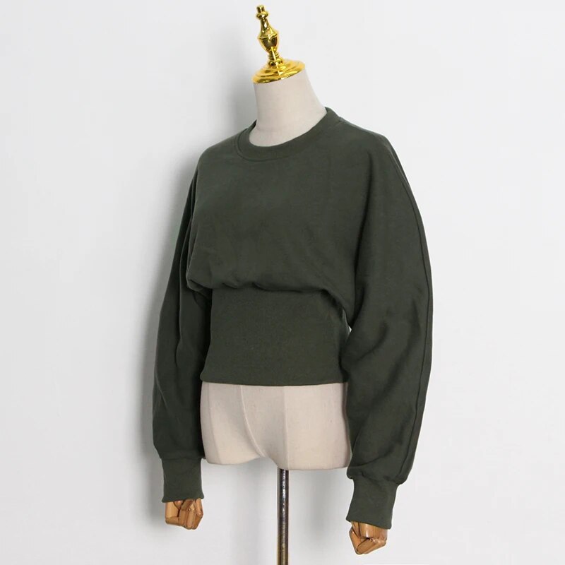 Green Sweatshirts For Women Slim Plain O Neck Long Sleeve