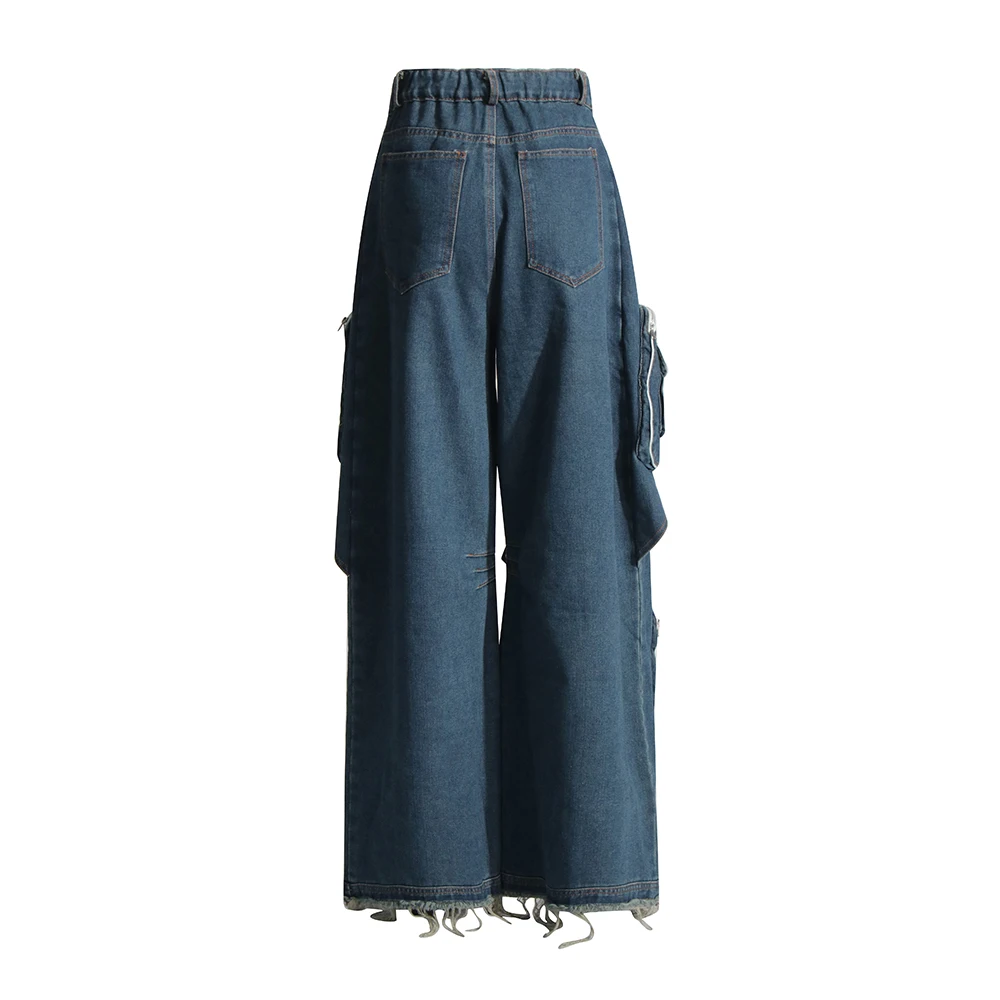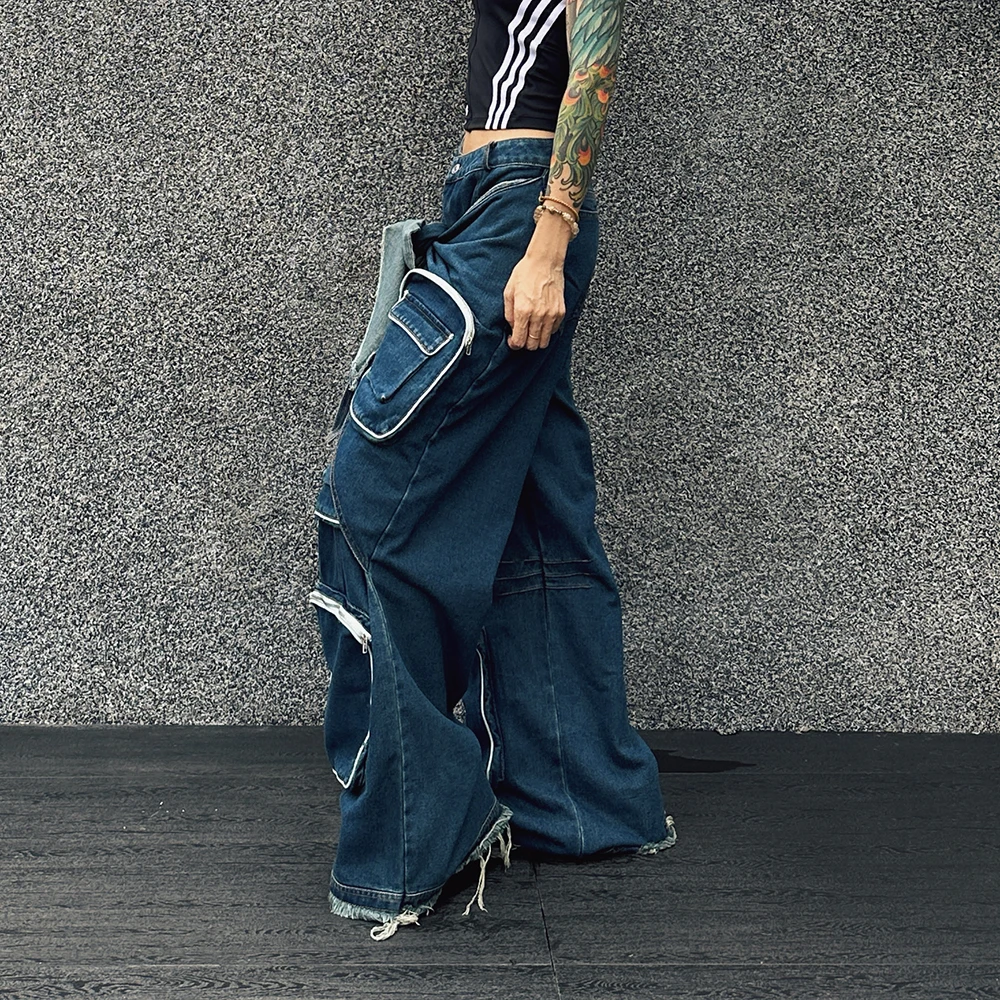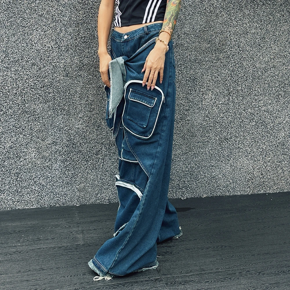 Structural binding workwear jeans for women loose fitting multi pocket jeans