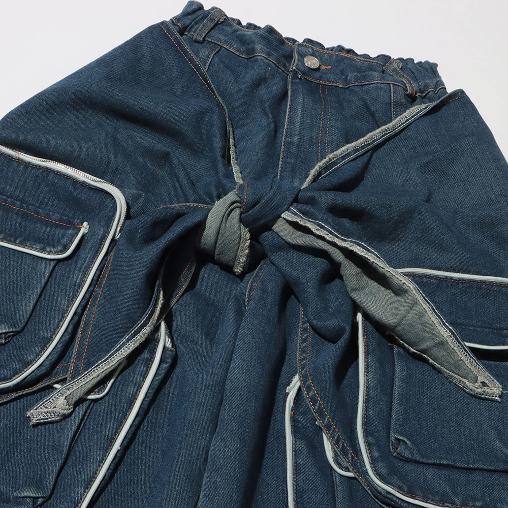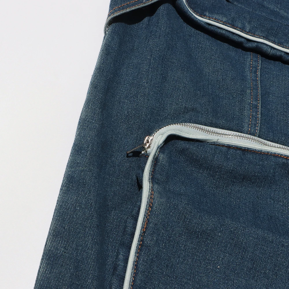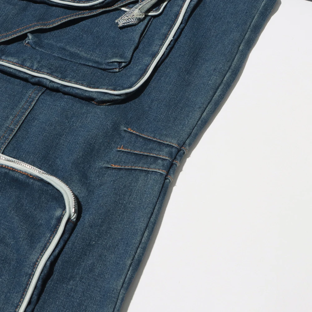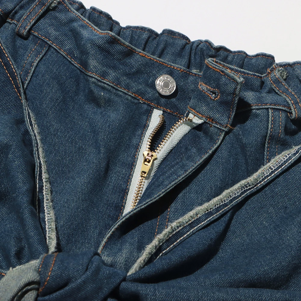 Structural binding workwear jeans for women loose fitting multi pocket jeans
